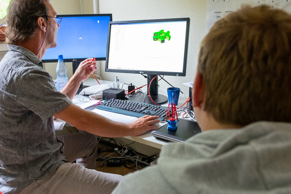 Ganz aktuell wurde ein Griff für einen Toaster gedruckt. Für die Jugendlichen ist es natürlich viel spannender an Aufgaben und Produkten zu arbeiten die einen echten Gebrauchswert haben. In der Kooperation mit dem Repair-Café kommt dazu noch der Aspekt der Nachhaltigkeit da Ersatzteile produziert werden, die so nicht mehr zu kaufen sind. Das bedeutet Müllvermeidung, weil defekte Geräte damit repariert werden können.