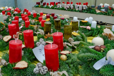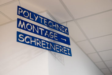 Der Alltag im (Arbeits-) Leben des ATZ (Arbeitstrainingszentrum), das im letzten Jahr eingeweiht wurde, hat sich eingespielt. Bei seinem alljährlichen Adventsbasar allerdings, geht es wie immer hoch her. Dann kommen vereinsweit viele Besucher und bestaunen die übers Jahr hergestellten Produkte. Liebevoll handbegundene Adventskränze und andere Basteleien finden ihre Abnehmer. Einen besonderen Adventskalender hat sich die Schreinerei ausgedacht, vegan und figurfreundlich sei er, so wird betont. Und Traditionen wie die Tombola, Waffeln und Bratwurst verlieren wohl nie ihren Reiz. Bei soviel Handwerkskunst steht auch die selbst gefertigte Beschilderung nicht zurück und darf sicherlich als Letter-Art bezeichnet werden. (Adventsbasar 2018)