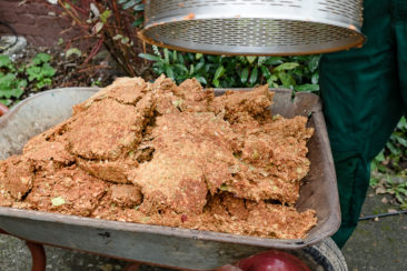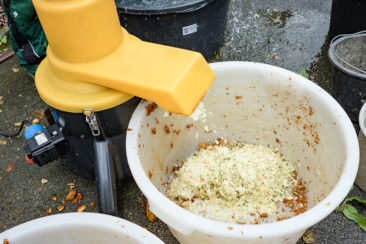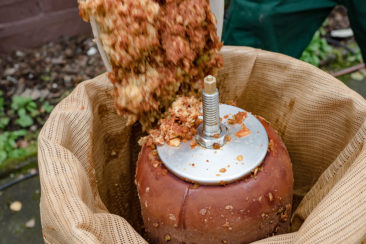"Aber ein paar Liter Saft von Mecklenburgern, Grünem Boskoop, Kaiser Wilhelm, Jakob Lebel, der Zabergäu Renette, dem Grafensteiner Frühapfel, dem roten Trierer Weinapfel und dem Freiherr von Berlepsch lassen sich pressen", erklärt Jens Hisserich-Liehr. Auch andere Sorten habe man, die aber in diesem Jahr nicht getragen hätten. 21 neue hochstämmige Obstbäume hat man auf dem Gelände gepflanzt, als Ausgleichpflanzung für die Bodenversiegelung durch den Neubau. Gehegt und gepflegt werden auf dem Hofgut jetzt insgesamt etwas über 50 Obstbäume.