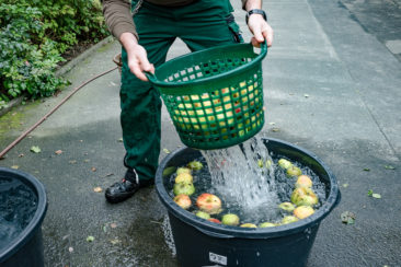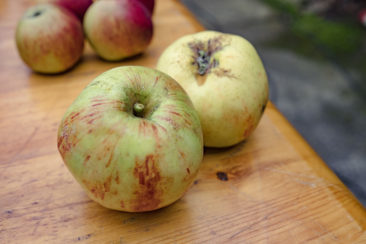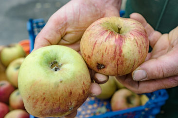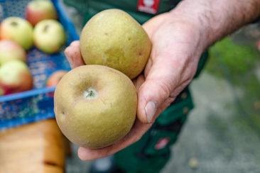 In diesem Jahr fällt die Apfelernte, wie überall in Europa, auf dem Georgenhammer recht karg aus. Das Wetter ist schuld. Später Frost im April ließ viele Blüten absterben. Auch  flogen deshalb wenig Bienen und der heiße Juni, gefolgt vom verregneten Juli, war für die Apfelbäume und ihre Früchte strapaziös.