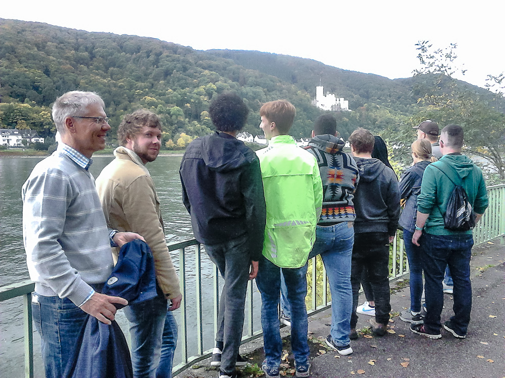 Dabei führte der abwechslungsreiche Radweg „R7“ die Gruppe bis Limburg fast ausschließlich an der Lahn entlang. Für die zwei jungen Frauen und die 5 jungen Männer kein größeres Problem, auch wenn die Teilstrecke von Wetzlar bis Limburg knapp 60 Kilometer lang war. Da das Etappenziel am zweiten Tag nicht in Limburg selbst lag, kamen für drei Freiwillige und die beiden Betreuer weitere 25 Kilometer dazu. Und die hatten es in sich. Schnell wurde der fünfköpfigen Radgruppe klar, woher der Zielort „Berghausen“ seinen Namen hat. Das vielleicht reizvollste Teilstück folgte, bei leichtem Nieselregen, von Limburg über Nassau und Bad Ems zum Zielpunkt in Lahnstein.