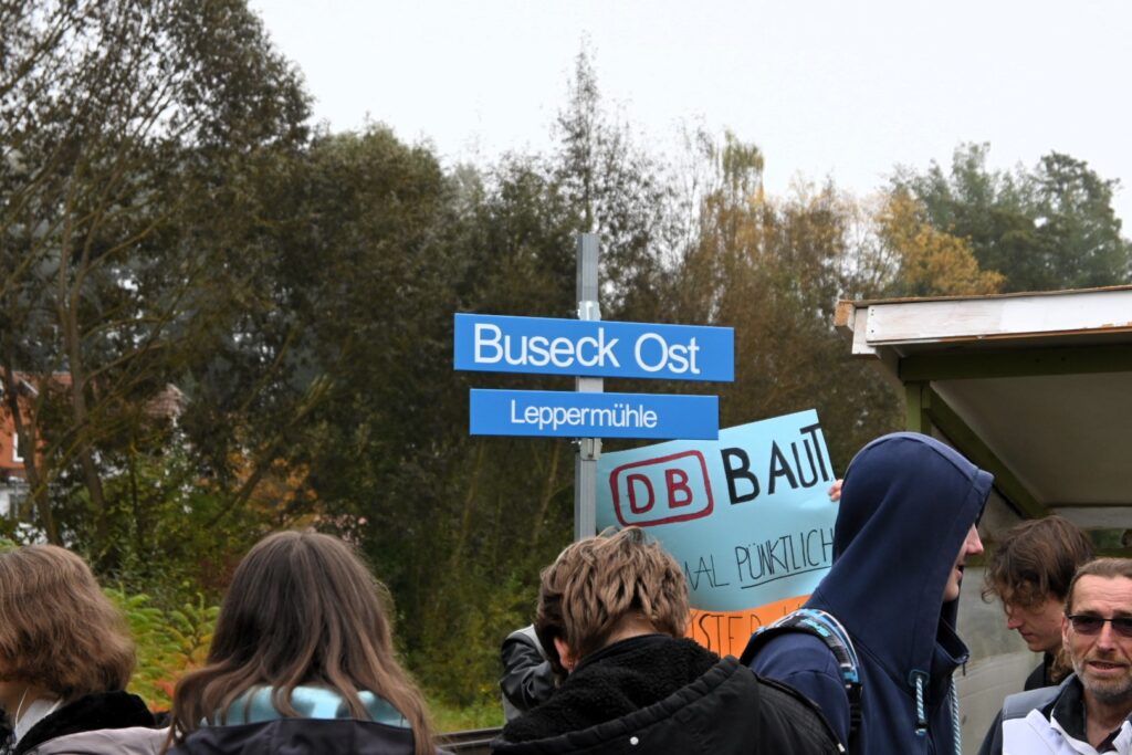 Während der Zug an den Jugendlichen vorbeifährt, die sich mit ihren Plakaten in der Kasseler Straße aufgestellt haben, verteilen Mitglieder der Verkehrswende-Initiative Buseck in der Bahn ein Faktenpapier, das über die Vorteile eines Haltepunktes Buseck-Ost aufklärt. Darin sind auch mögliche Zuwege vom Gelände der Leppermühle in die Kasseler Straße thematisiert, die den Fußweg erheblich verkürzen würden. Der Bahnhaltepunkt Buseck-Ost– der auch von der Gemeinde Buseck unterstützt wird – wird dort als Teil des RegioTram-Konzeptes für Mittelhessen aufgeführt. Demzufolge sollen alle Züge, die ab Mücke in Richtung Gießen fahren, über ein neu zu bauendes Gleissystem in Gießen als Straßenbahn über die Bundesstraße 49, die Grünberger Straße, den Berliner Platz, Innenstadt und Frankfurter Straße zum Hauptbahnhof fahren.