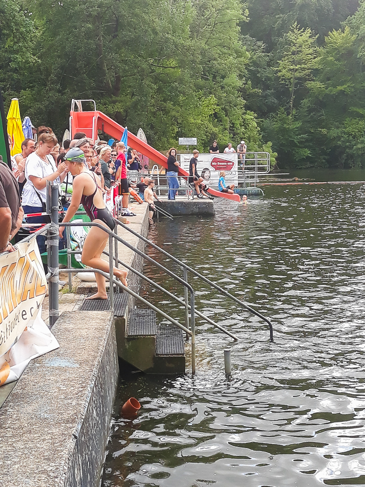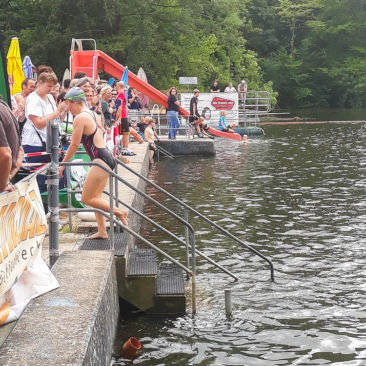 Dabei verlangte schon die Schwimmstrecke von 1500 Meter bei 20 Grad Wassertemperatur unserer Startschwimmerin (ohne Neoprenanzug) einiges ab. Direkt auf das Schwimmen folgte eine Mountainbike- Strecke von 44 Kilometern im Licher Wald, für die der ursprünglich eingeplante Radfahrer leider relativ kurzfristig ersetzt werden musste.