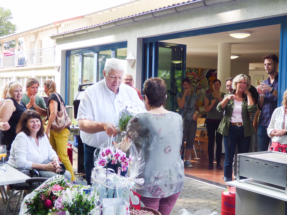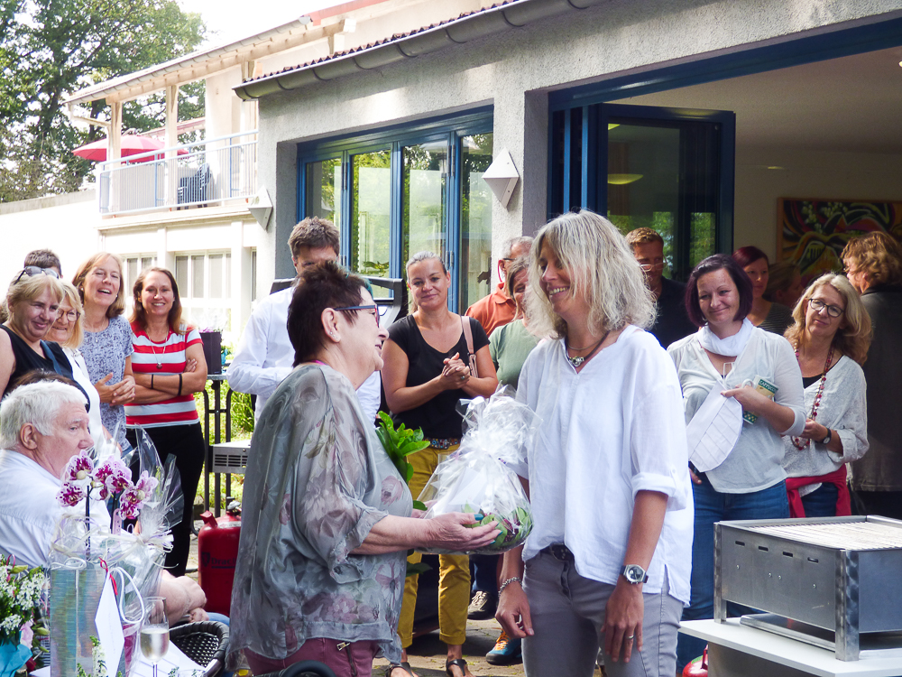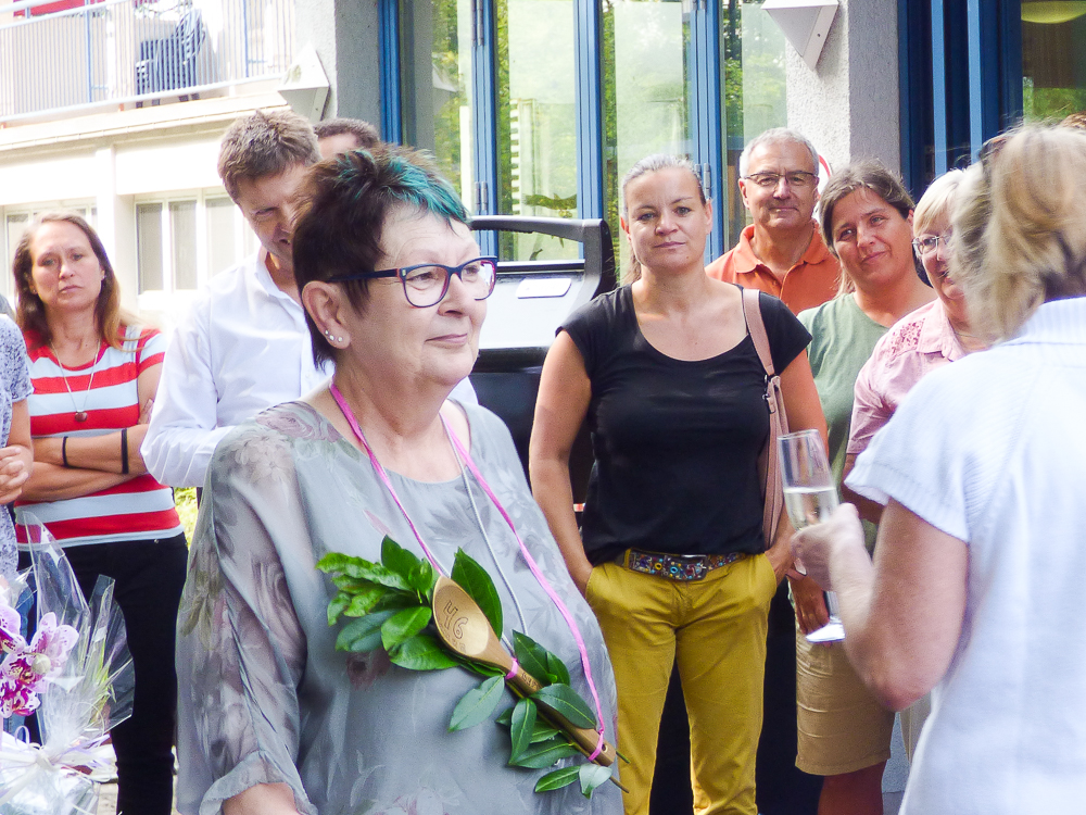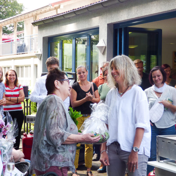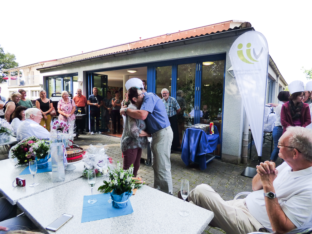 Für 46 Jahre ihres Mitwirkens in der Zentralküche der LepperMühle wurde Monika Litschewsky am 25.August 2017 gefeiert und in ihren wohl verdienten Ruhestand entlassen.Viele Mitarbeiterinnen und Mitarbeiter aber auch Bewohnerinnen und Bewohner nahmen die Gelegenheit wahr, um sich von ihr persönlich und herzlich zu verabschieden. Für das leibliche Wohl sorgten ausnahmsweise die Gäste, denn die Küche sollte an diesem besonderen Tag nicht mit der Versorgung beschäftigt sein. Über das engagierte und treue Wirken der Küchenchefin werden wir in der nächsten Ausgabe des vjj-Journals ausführlicher berichten.