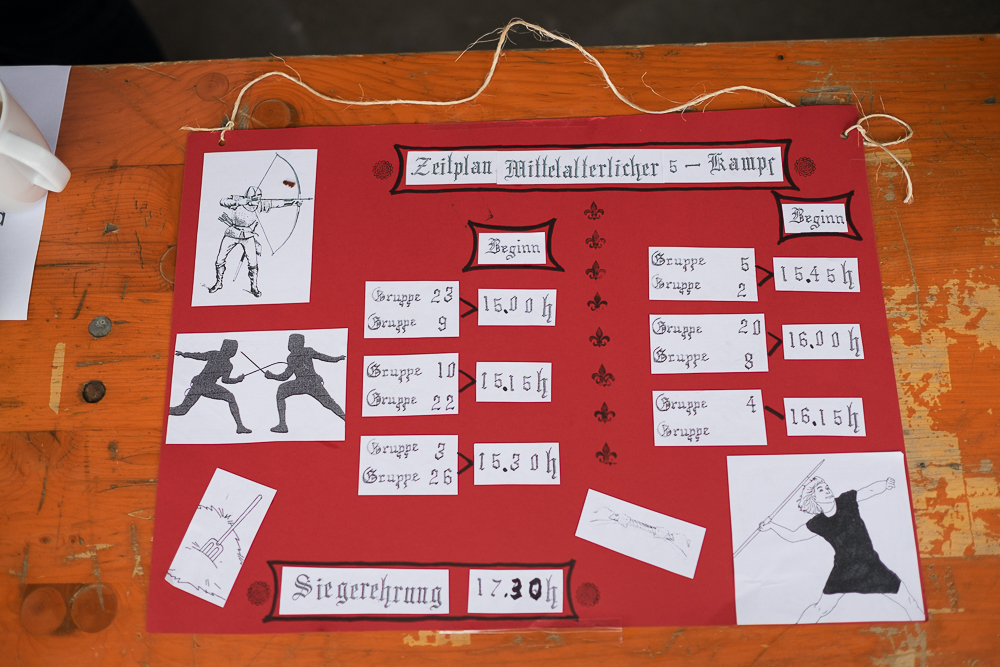 Anlässlich des Sommerfestes 2017 am 8. September wurden viele Sport- und Bewegungsspiele organisiert. Im Mittelpunkt stand der mittelalterliche Fünfkampf. Tauziehen, Speerwurf, Bogenschießen und Fechten galt es in der Gruppe zu meistern.