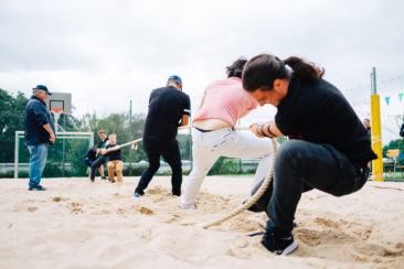 Anlässlich des Sommerfestes 2017 am 8. September wurden viele Sport- und Bewegungsspiele organisiert. Im Mittelpunkt stand der mittelalterliche Fünfkampf. Tauziehen, Speerwurf, Bogenschießen und Fechten galt es in der Gruppe zu meistern.