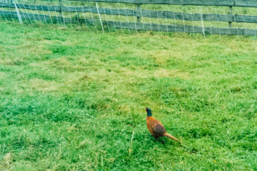 Heute auch vor der Camera: ein Fasan - kein ganz seltener, aber doch ein eher scheuer Besucher auf dem Hofgut.
