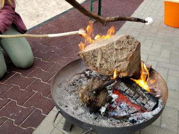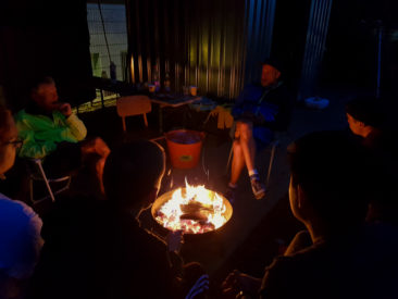 Bei der Übernachtung hatten die Bewohner/innen die Qual der Wahl: Im Fitnessraum, in der Turnhalle, im Zelt vor der Sporthalle, oder schließlich doch lieber in der vertrauten Wohngruppe! Manch einer verschob diese Entscheidung bis das Lagerfeuer abends entfacht wurde.