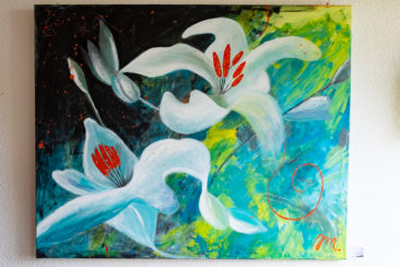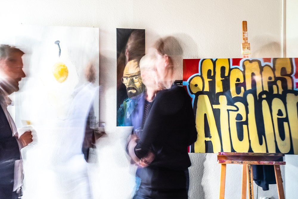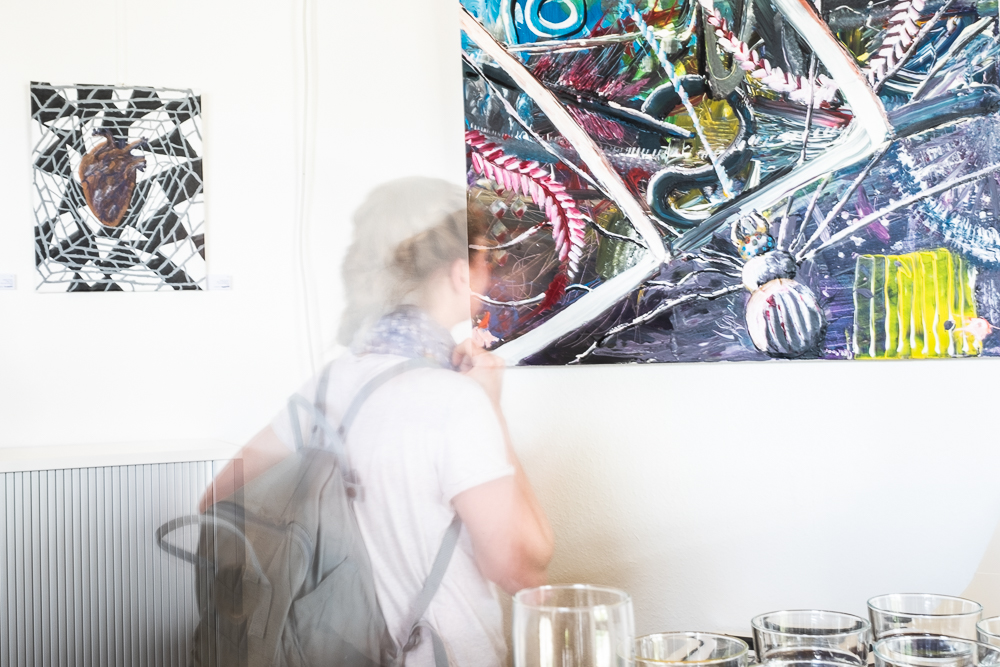 Spontan kam es zu einer Versteigerung zweier Kunstwerke, da gleich mehrere Besucher Interesse an diesen Werken hatten. Die meisten Bilder sind käuflich zu erwerben.