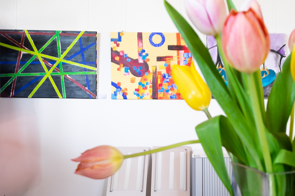 Nach etwas mehr als 12-monatiger Vorbereitungszeit konnte das offene Atelier der LepperMühle die Ausstellung "Unsichtbares sichtbar machen" im Bildungszentrum der Lebenshilfe vom Landesverband Hessen, Raiffeisenstraße 18 in Marburg realisieren. Eingebettet in ein musikalisches Rahmenprogramm von Bloody Merry wurde die Ausstellung von Christiane Liersch - Lebenshilfe - und Christian Berger von der LepperMühle am 27.04.2018 um 14:00 Uhr eröffnet. Circa 80 Gäste waren bei der Ausstellungseröffnung anwesend.